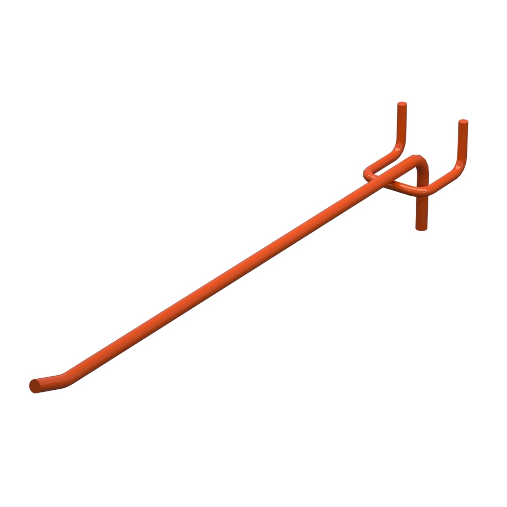 Гачки для перфорації довжиною 250 мм призначені для розміщення товарів на торгових стендах з перфорацією. Виріб виконаний із металу з прутом діаметром 5 мм. Покриття кольору Оранжевий RAL2004 забезпечує захист від корозії. Крок кріплення – 22.5 мм. Тип виконання - Одинарний. Кріплення - На перфорацію.