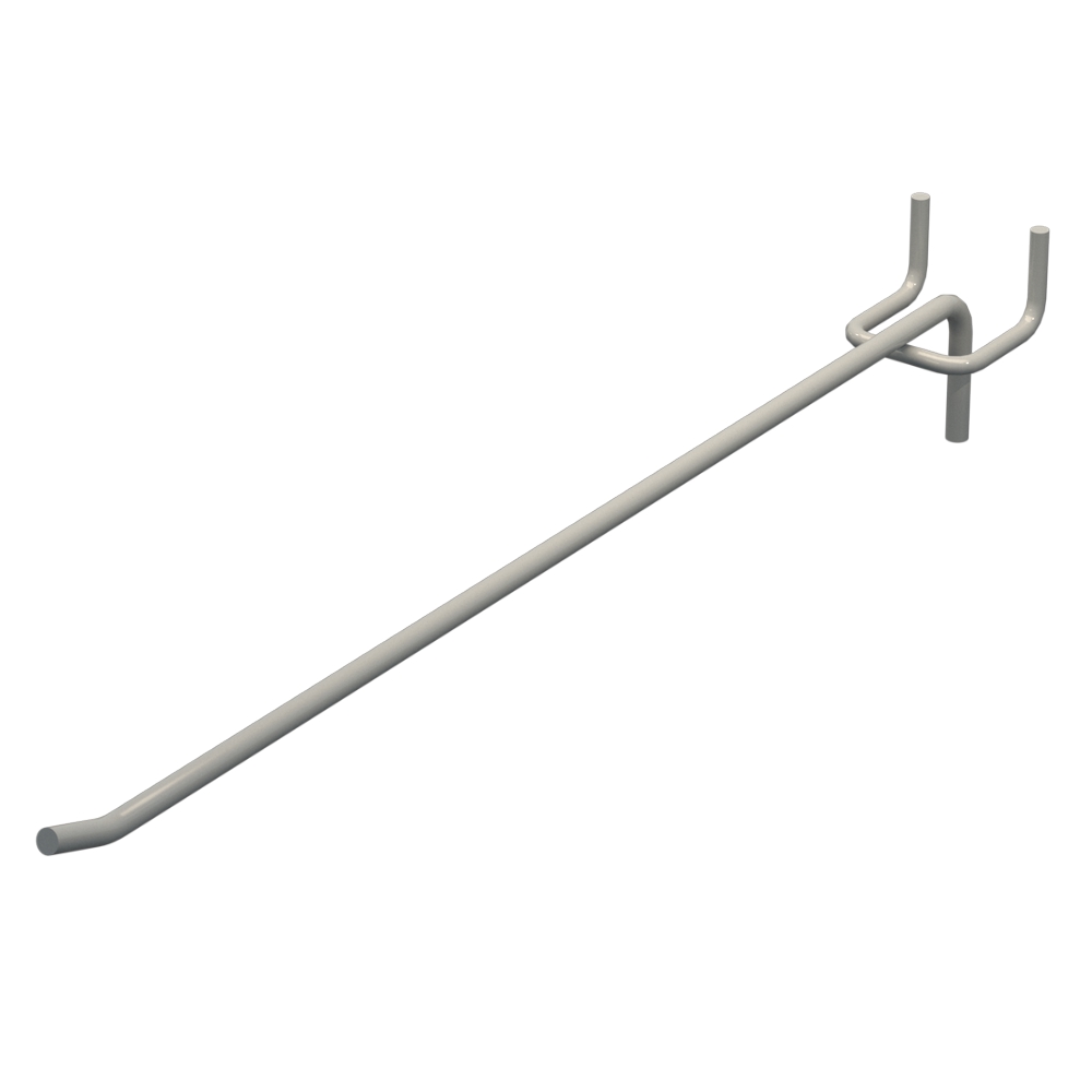 Гачок для магазину довжиною 300 мм виготовлений із металевого прута діаметром 5 мм. Виріб виконаний із металу з прутом діаметром 5 мм. Світло сірий RAL7035 забезпечує захист від корозії. Крок кріплення – 35 мм. Тип виконання - Одинарний. Кріплення - На перфорацію.
