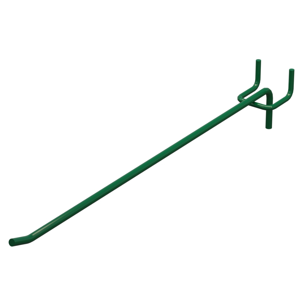 Одинарний гачок довжиною 300 мм призначений для розміщення товарів на торгових стендах з перфорацією. Прут діаметром 5 мм забезпечує міцність та надійність. Довжина виробу – 300 мм. Покриття - Зелений RAL6029. Гачок призначений для кріплення на перфорації із кроком 22.5 мм. Тип - одинарний. Спосіб кріплення - На перфорацію.