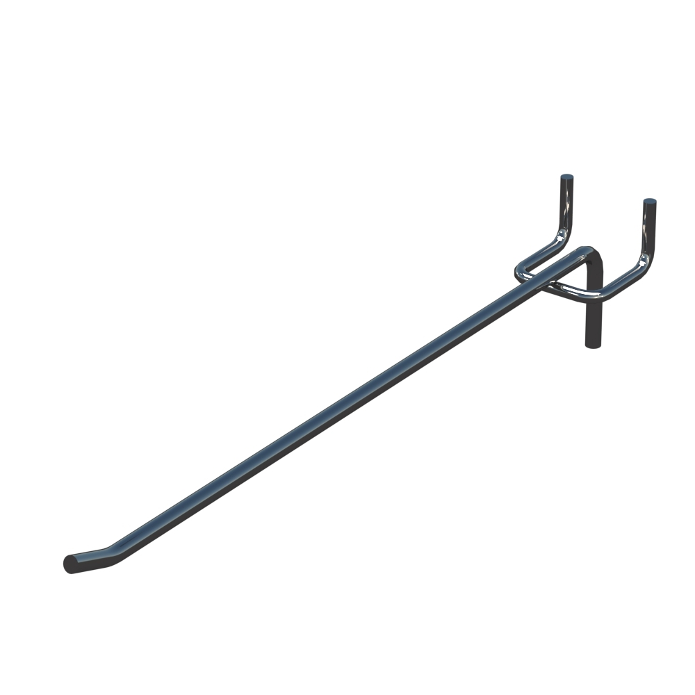 Гачок для перфорації одинарний 250 мм призначений для розміщення товарів на торгових стендах з перфорацією. Матеріал виготовлення - сталевий прут діаметром 4 мм. Довжина гачка становить 250 мм. Поверхня пофарбована в колір: Порошкова фарба Хром. Крок перфорації – 30 мм. Гачок відноситься до типу одинарний, кріплення - на перфорацію.