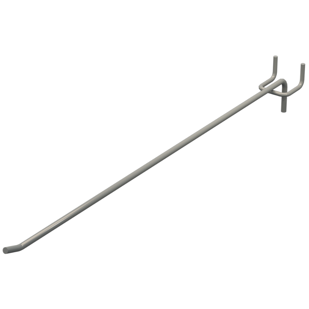 Гачок для магазину довжиною 400 мм виготовлений із металевого прута діаметром 5 мм. Матеріал виготовлення - сталевий прут діаметром 5 мм. Довжина гачка становить 400 мм. Поверхня пофарбована в колір Сірий RAL9006. Крок перфорації – 22.5 мм. Гачок відноситься до типу одинарний, кріплення - на перфорацію.