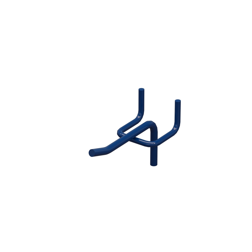 Одинарний торговий гачок із довжиною 50 мм застосовується для викладення продукції на перфорованих панелях. Матеріал виготовлення - сталевий прут діаметром 5 мм. Довжина гачка становить 50 мм. Поверхня забарвлена у колір Синій RAL5002. Крок перфорації – 25 мм. Гачок відноситься до типу одинарний, кріплення - на перфорацію.