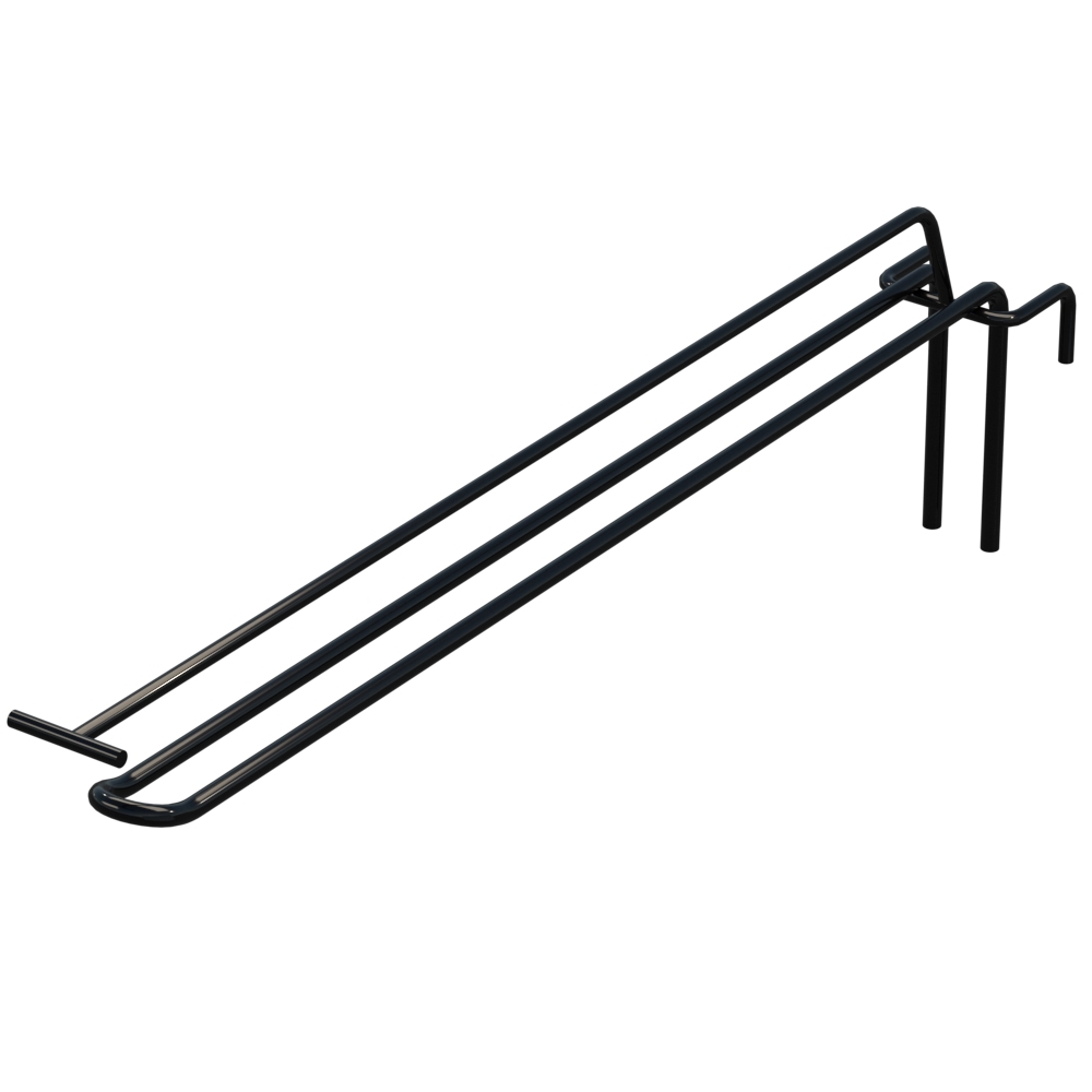 Двойной крючок Крючок двойной с ценникодержателем L-350 мм D-5 мм для сетки имеет оптимальные параметры: 350 мм в длину и 5 мм толщиной. Поверхность оформлена в цвете Черный RAL9005, что делает его универсальным для магазина. Двойная конструкция обеспечивает усиленную нагрузку и надёжную фиксацию упаковок. Наша компания оперативно изготавливает крючки под заказ и обеспечивает быструю логистику. Отправляем по всей Украине: Одесса, Бердянск, Луцк, Львов, Бровары, Кременчуг, Ровно, Каменское, и другие.