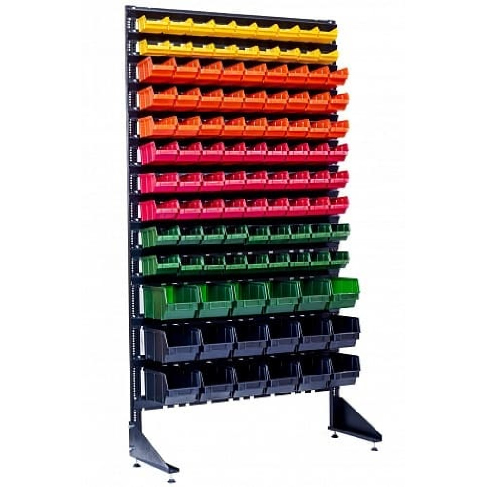 Коли в магазині кріплення тисячі болтів, гайок, саморізів і шайб — стелаж для магазину з пластиковими ящиками 108 шт перетворює хаос на систему продажів. Займає всього 1000×350 мм, але вміщує до 18 000 одиниць. Комплектація: 12 ящиків 701 LUX чорних (2,34 л), 24 ящики 701 LUX зелених (2,34 л), 27 ящиків 702 LUX зелених (0,74 л), 27 ящиків 702 LUX червоних (0,74 л), 27 ящиків 703 LUX жовтих (0,32 л). 14 траверс — навантаження 250 кг. Висота 1800 мм, перфорація 50 мм. Замовляйте в Торгпроект за посиланням стелаж 108 лотків.