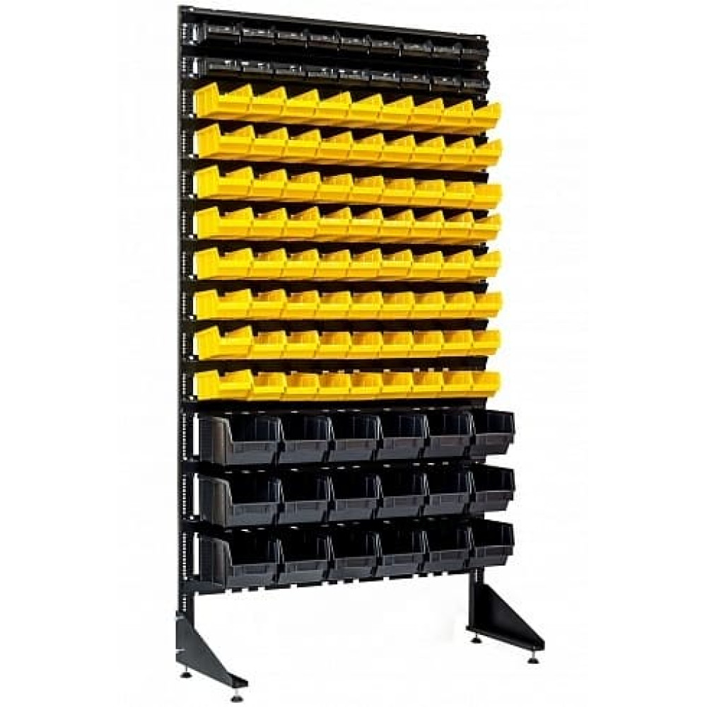 Для гаража, майстерні чи СТО з оборотом 1500–4000 позицій — стелаж для метизів на 108 пластикових лотків для гаража — це оптимальне рішення. Займає 1 м², але зберігає до 16 000 одиниць кріплення. Комплектація: 18×701 LUX чорних (42,12 л), 72×702 LUX жовтих (53,28 л), 18×703 LUX чорних (5,76 л). 14 траверс — навантаження 250 кг. Висота 1800 мм, крок перфорації 50 мм. Замовляйте в Торгпроект за посиланням стелаж 108 лотків для гаража.