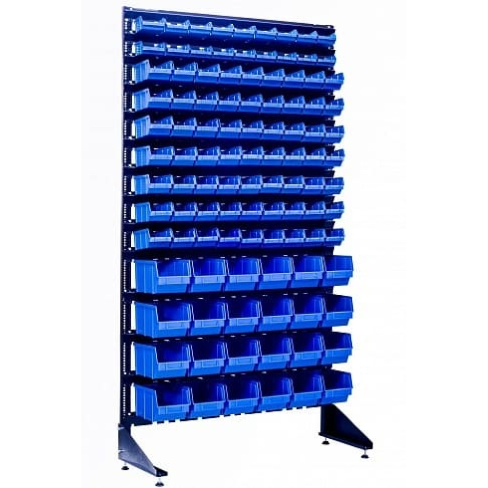 Модель орієнтована на СТО з інтенсивним оборотом дрібнички. Складські стелажі з ящиками для СТО дозволяють розмістити до 280 позицій на 1 м². Це в 3,5 раза ефективніше відкритих полиць. Стелажі для складу СТО з лотками забезпечують візуальний контроль, виключають пересортицю та прискорюють комплектацію на 65%. Стенди односторонні з пластиковими ящиками для СТО — стандарт для шиномонтажів та автосервісів.
