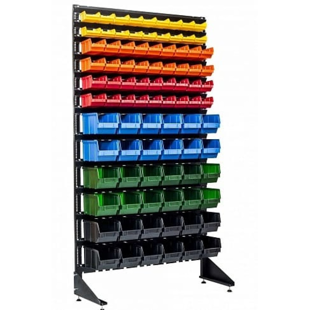 Коли в торговому залі або на СТО потрібно не тільки зберігати, а й ефектно демонструвати кріплення, стелаж з лотками для демонстрації метизів - 90 шт стає справжнім бестселером. Ця одностороння конструкція висотою 1800 мм, шириною 1000 мм і глибиною 350 мм займає лише 0,35 м², але вміщує 90 яскравих пластикових ящиків серії LUX у п'яти кольорах: 12 чорних 701, 12 синіх 701, 12 зелених 701, 36 червоних 702 та 18 жовтих 703. Загальний корисний об’єм — 148,38 літрів, навантаження до 250 кг, 13 розподілів по 13 посиленим траверсам. Кольорова диференціація робить асортимент візуально привабливим для покупців, а зручний доступ прискорює обслуговування. Замовити стелажі для метизів з ящиками можна прямо зараз у Торгпроект, перейшовши за посиланням стелаж 90 ящиків — доставка по всій Україні за 1–3 дні.