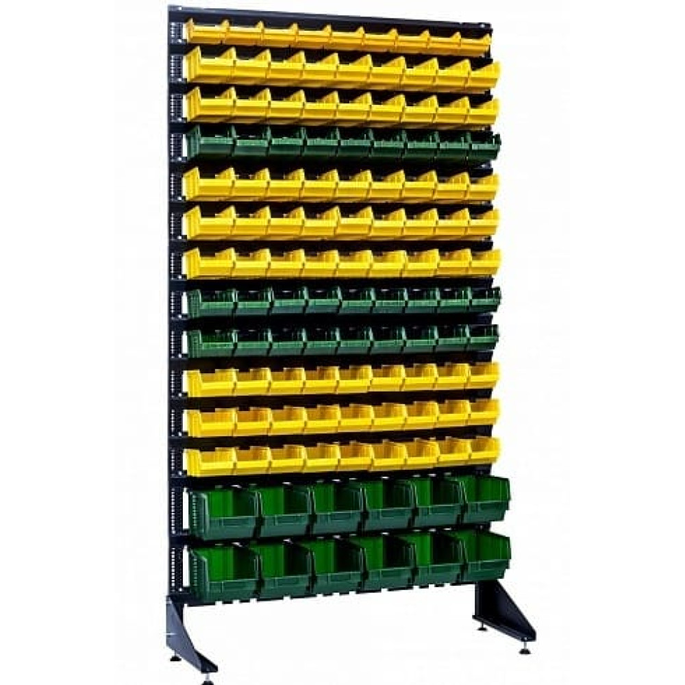 Цей стелаж з лотками для фітингів та дрібниць на 120 ящиків — найкраще рішення для тих, хто шукає спеціалізовану систему зберігання сантехнічних фітингів, ущільнювачів, хомутів та витратних матеріалів. 72 жовтих ящики 702 LUX спеціально виділені під найхідовіші позиції (до 99% щоденних продажів), а зелені ящики ідеально підходять для великогабаритних та середніх фітингів. Кольорове маркування перетворює пошук з рутини на миттєву операцію. Серед усіх стелажів для фітингів з ящиками, стелажів для сантехніки та стелажів для складу з лотками ця модель вирізняється максимальною щільністю розміщення — 343 ящики на м², що на 38–42% вище, ніж у аналогів з одноколірними ящиками.