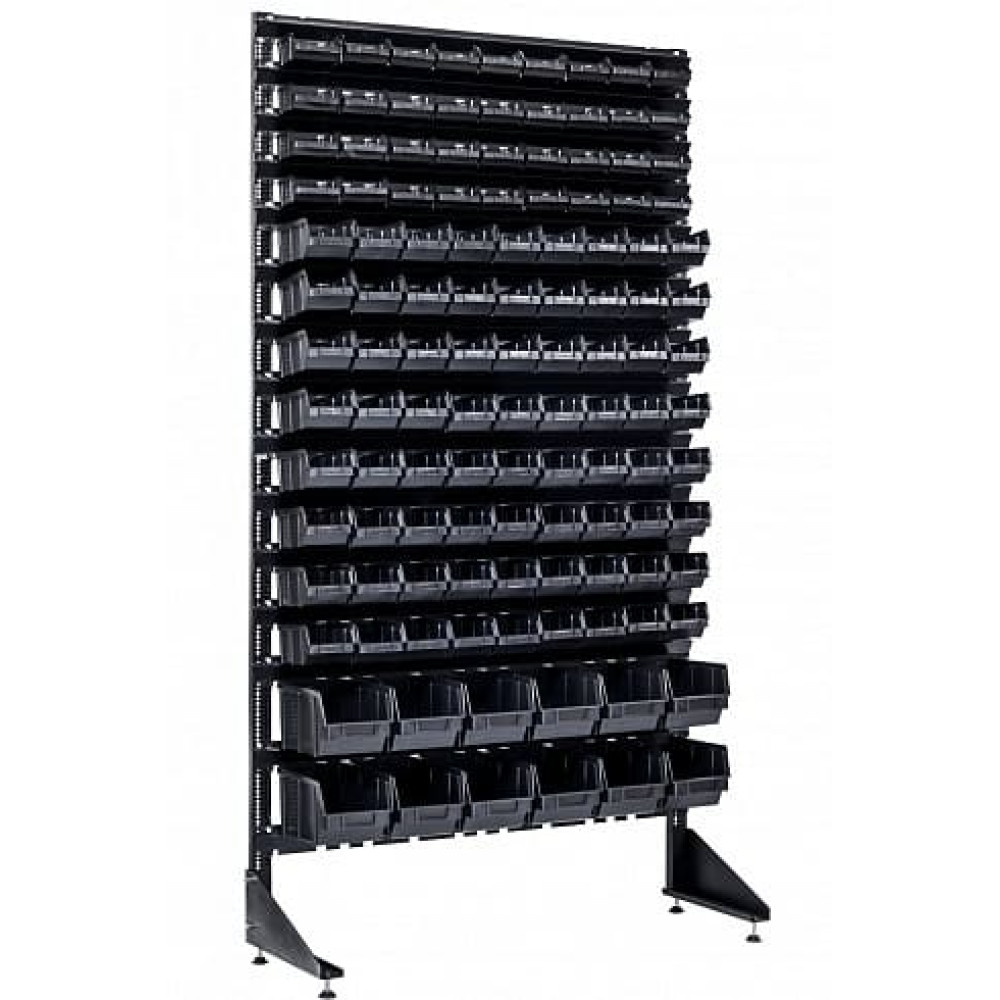 Завдяки продуманому співвідношенню розмірів ящиків (12 великих + 72 середніх + 36 малих) досягається ідеальний баланс між місткістю великого та дрібного кріплення. Такі стелажі для зберігання дрібних деталей затребувані на виробництвах, в автосервісах та оптових базах кріпильних виробів. Всі компоненти сумісні між собою, докупити ящики можна протягом 7 років після покупки.
