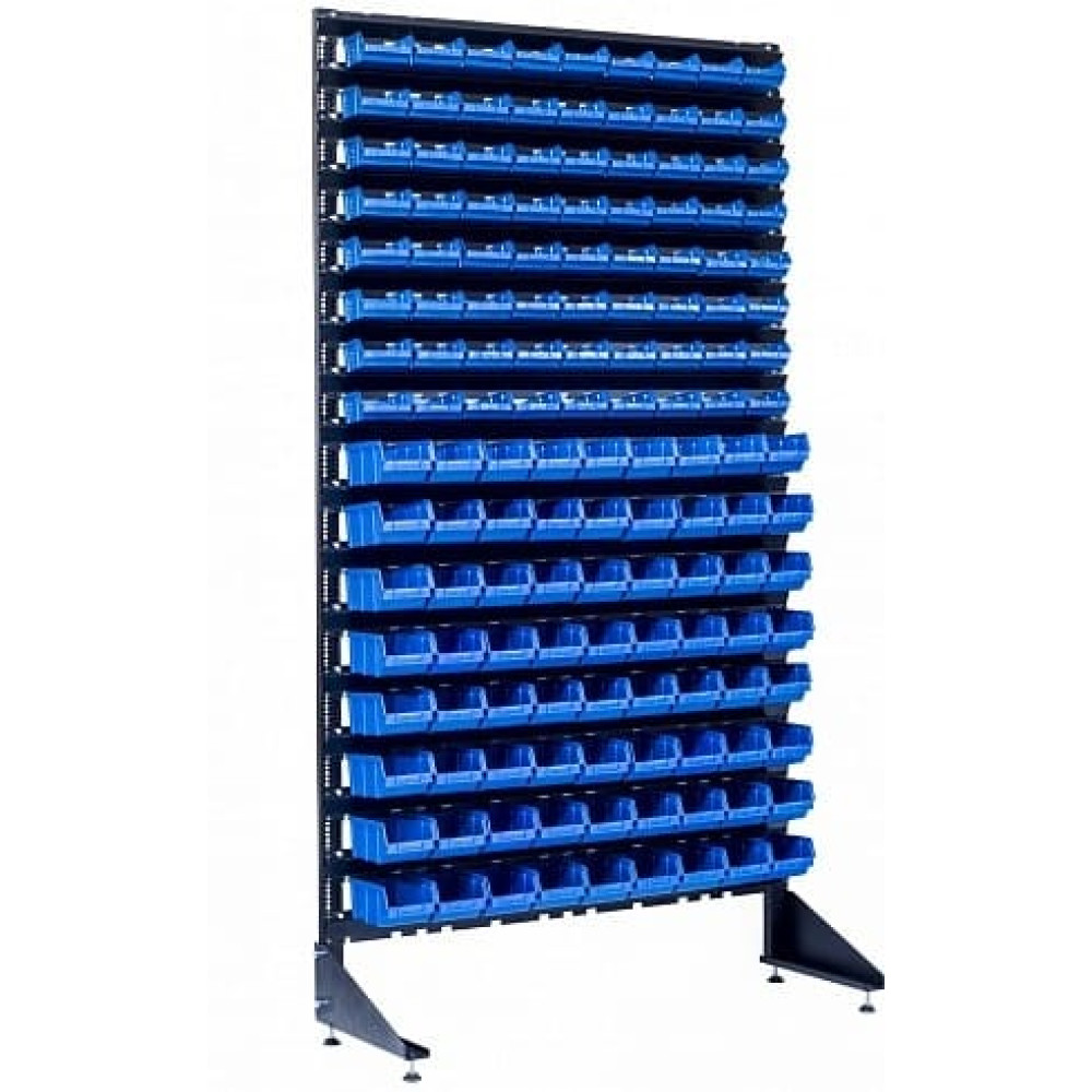 Професійний стелаж складський для фурнітури 144 лотки у синьому кольорі — це найпопулярніший стелаж серед меблевих виробництв, швейних цехів, виробників автозапчастин, електроніки та торгових компаній. Комплектація: 72 синіх ящики 702 LUX + 72 синіх ящики 703 LUX. Синій колір — офіційний стандарт більшості меблевих фабрик та швейних підприємств України. Навантаження 250 кг, 17 траверс, складання за 11 хвилин.