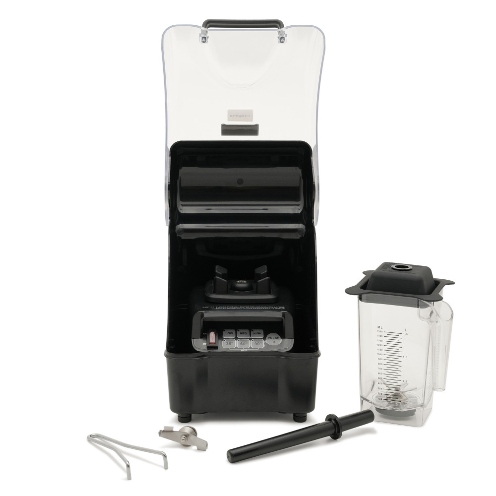 - Звукопоглинаючий бокс (кожух), під час роботи блендера, знижує шум, дозволяючи відпочиваючим розслабитися та отримати чудові враження від улюбленого напою.