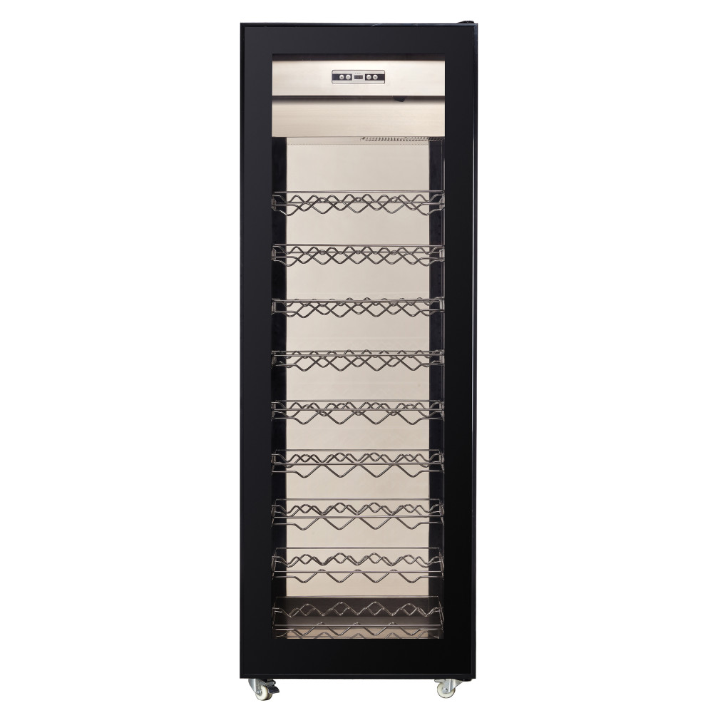 - Підлогова холодильна вітрина для вина на 9 хромованих винних полиць.