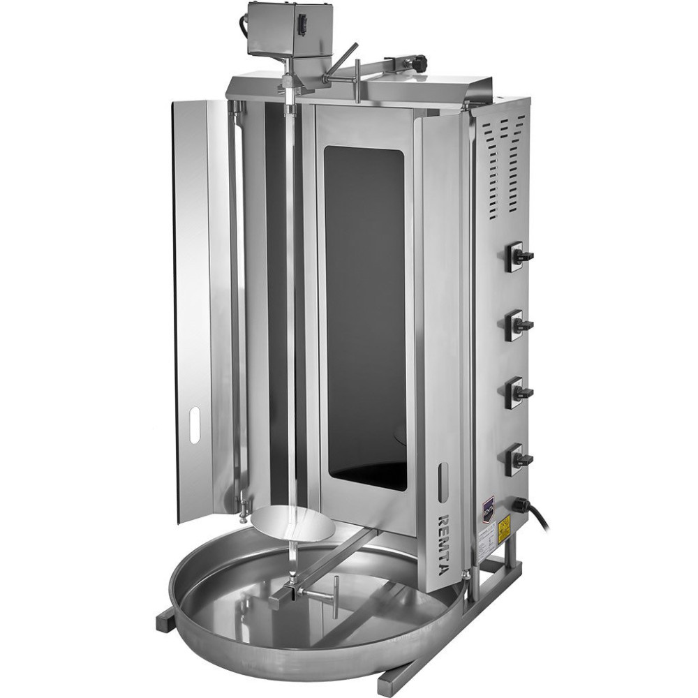 Електричний апарат для шаурми REMTA SD17 – це високопродуктивне обладнання для шаурми, яке ідеально підходить для ресторанів, кафе, точок швидкого харчування та вуличної торгівлі. Цей гриль для шаурми поєднує в собі сучасні технології, зручність використання та надійність, що робить його чудовим вибором для тих, хто хоче купити гриль для шаурми з оптимальним співвідношенням ціни та якості. Завдяки продуманій конструкції та потужним нагрівальним елементам, REMTA SD17 забезпечує рівномірне приготування м’яса, зберігаючи його соковитість і смак.