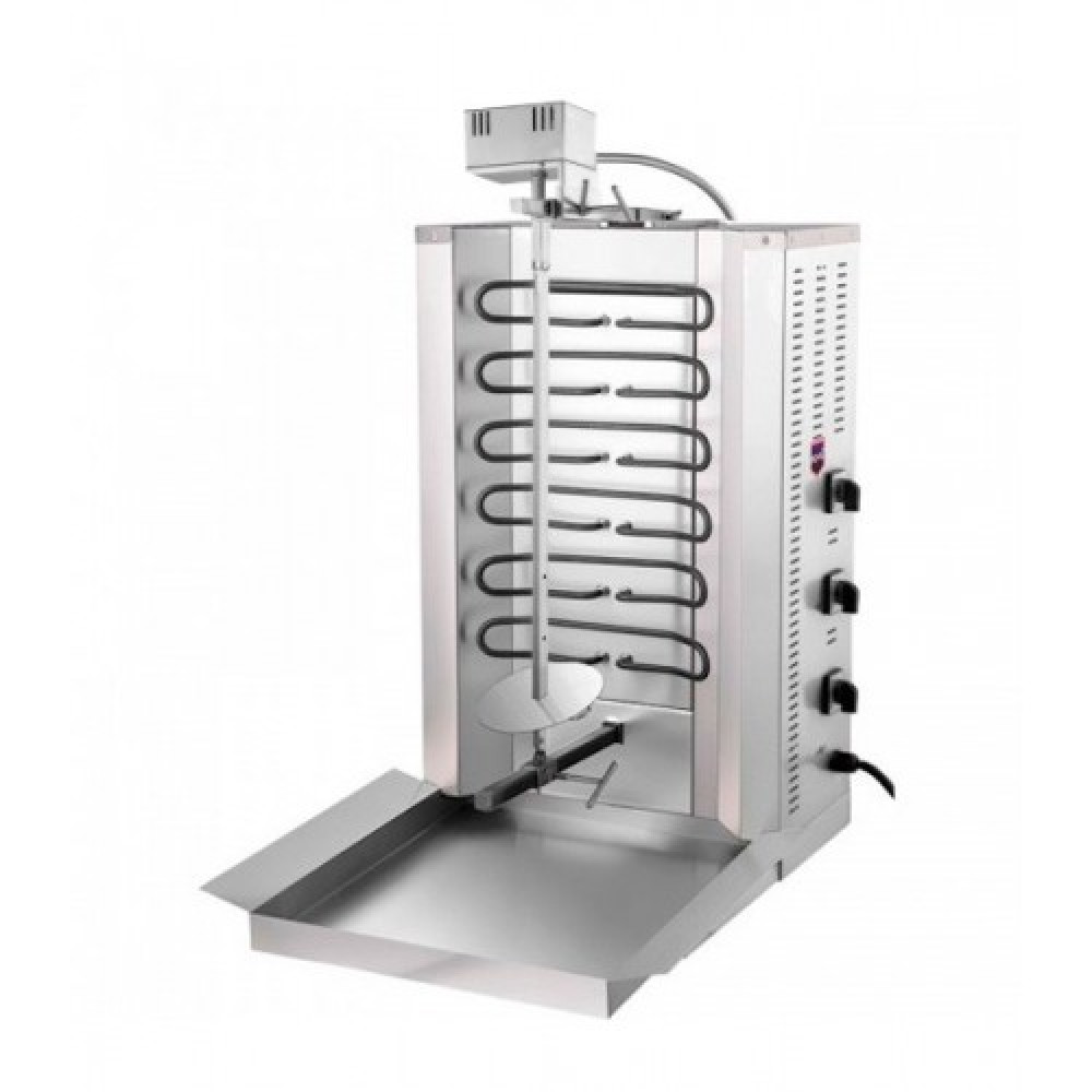 - Висока продуктивність: Апарат оснащений шістьма електричними ТЕНами, які забезпечують рівномірне просмажування м’яса, що гарантує ідеальний смак і текстуру шаурми.