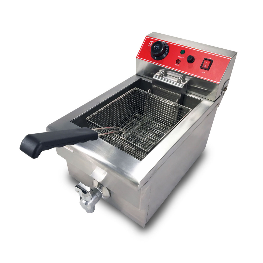 Електрична фритюрниця професійна GoodFood EF8 кран – це високоякісне обладнання, створене для ресторанів, кафе, закладів швидкого харчування та інших закладів громадського харчування. Ця фритюрниця промислова забезпечує швидке та рівномірне приготування страв у фритюрі, таких як картопля фрі, нагетси, чебуреки та інші закуски. Якщо ви хочете купити фритюрницю для професійної кухні, GoodFood EF8 стане чудовим вибором завдяки своїй надійності, зручності та ефективності.