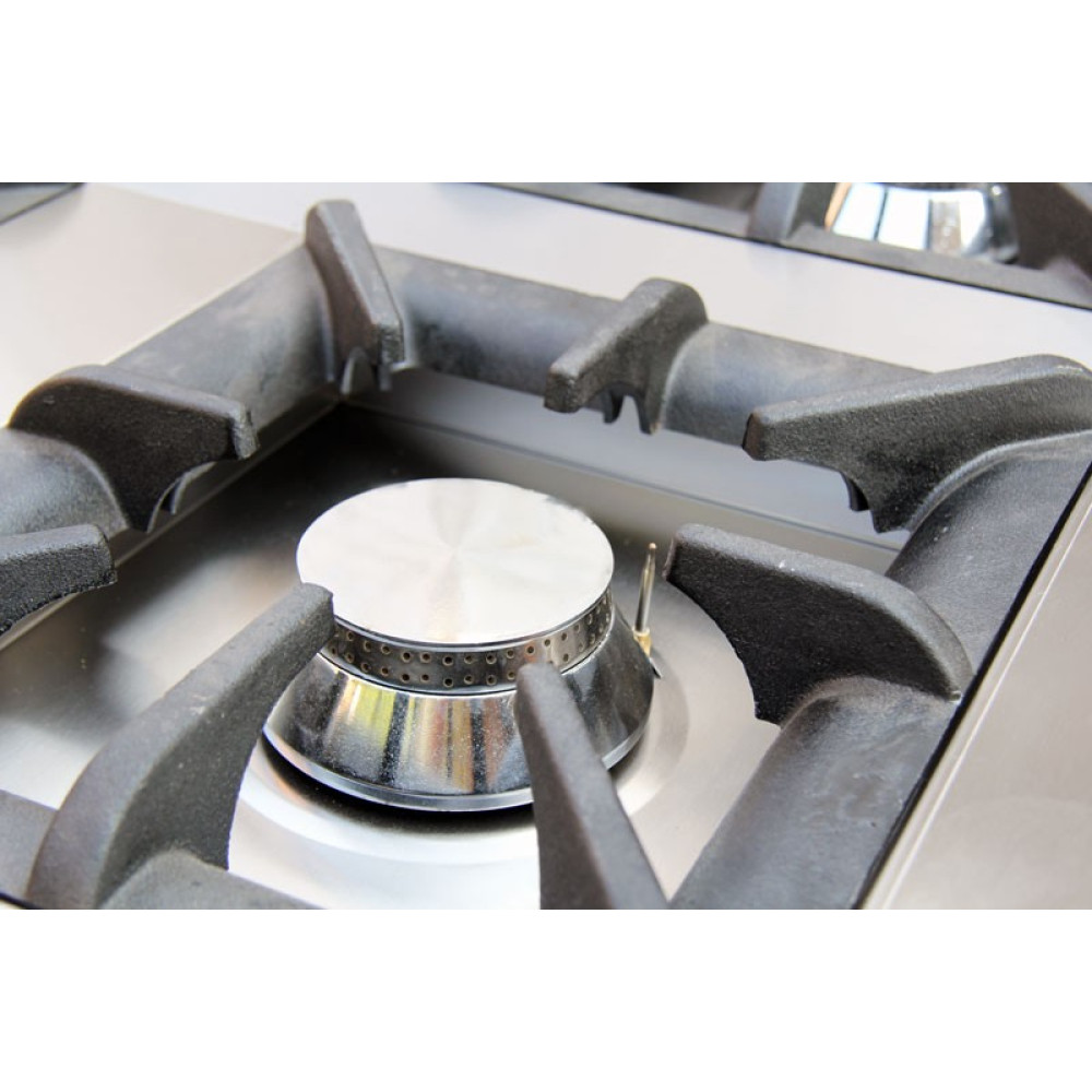 Потужність однієї конфорки 6,5 кВт. Газові пальники з мікроперфорацією, дворядні. Наявність газконтролю. Конфорки виготовлені із чугуна. Гарантія 1 рік.