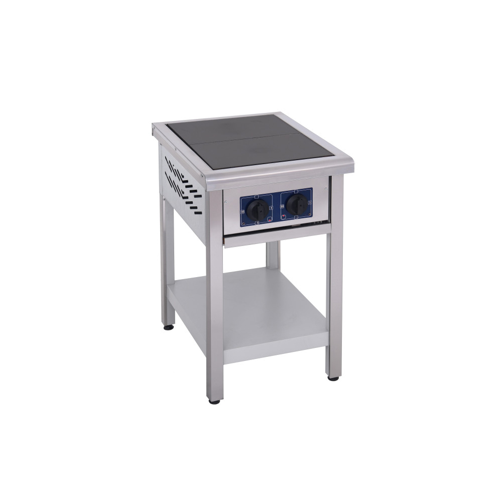 Зручне переміщення посуду будь-яких розмірів по всій поверхні плити. Конфорки виготовлені з чавуну, що забезпечує рівномірне розподілення температури. Стільниця виконана без швів, це полегшує санітарну обробку поверхні. Плита електрична поставляється з кабелем для підключення на 3 фази. До плит пропонуються витяжні парасольки: пристінні та острівні, будь-яких розмірів та конфігурацій. Гарантія 1 рік.