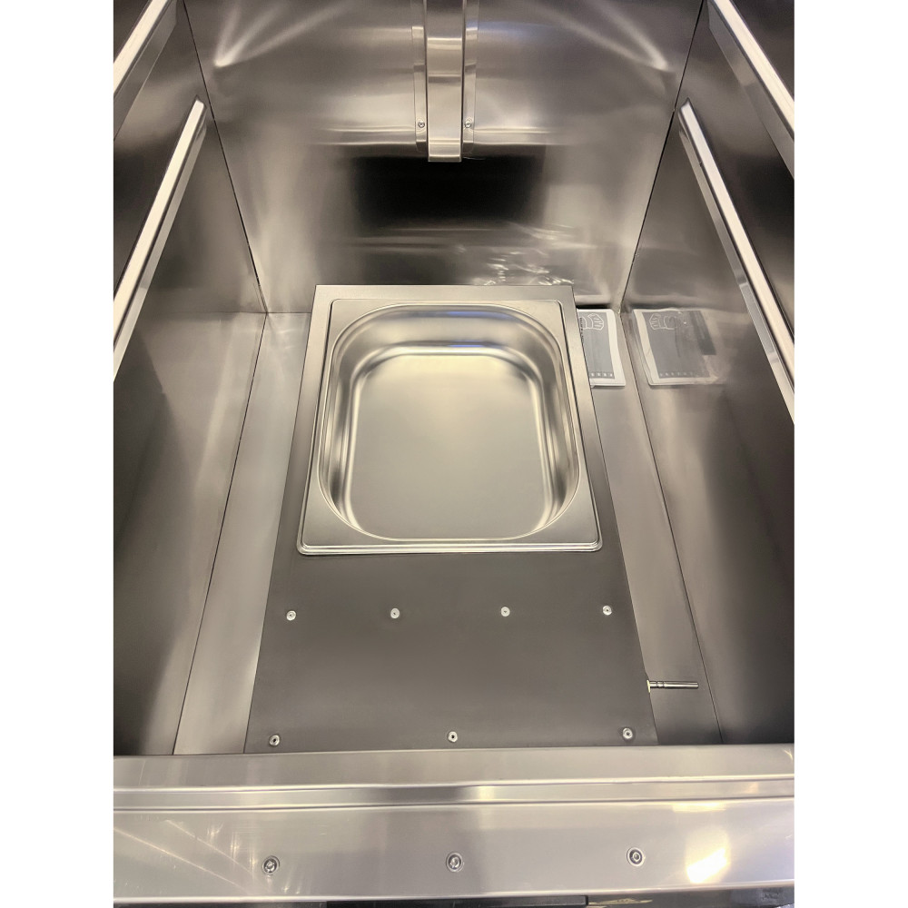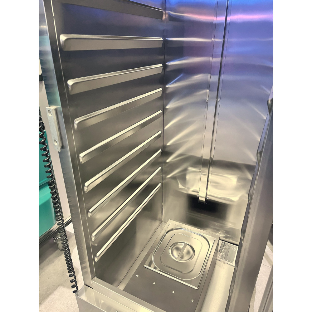 - Апарат обладнаний гратчастими полицями, на яких розміщуються страви на тарілках або в гастроємності.