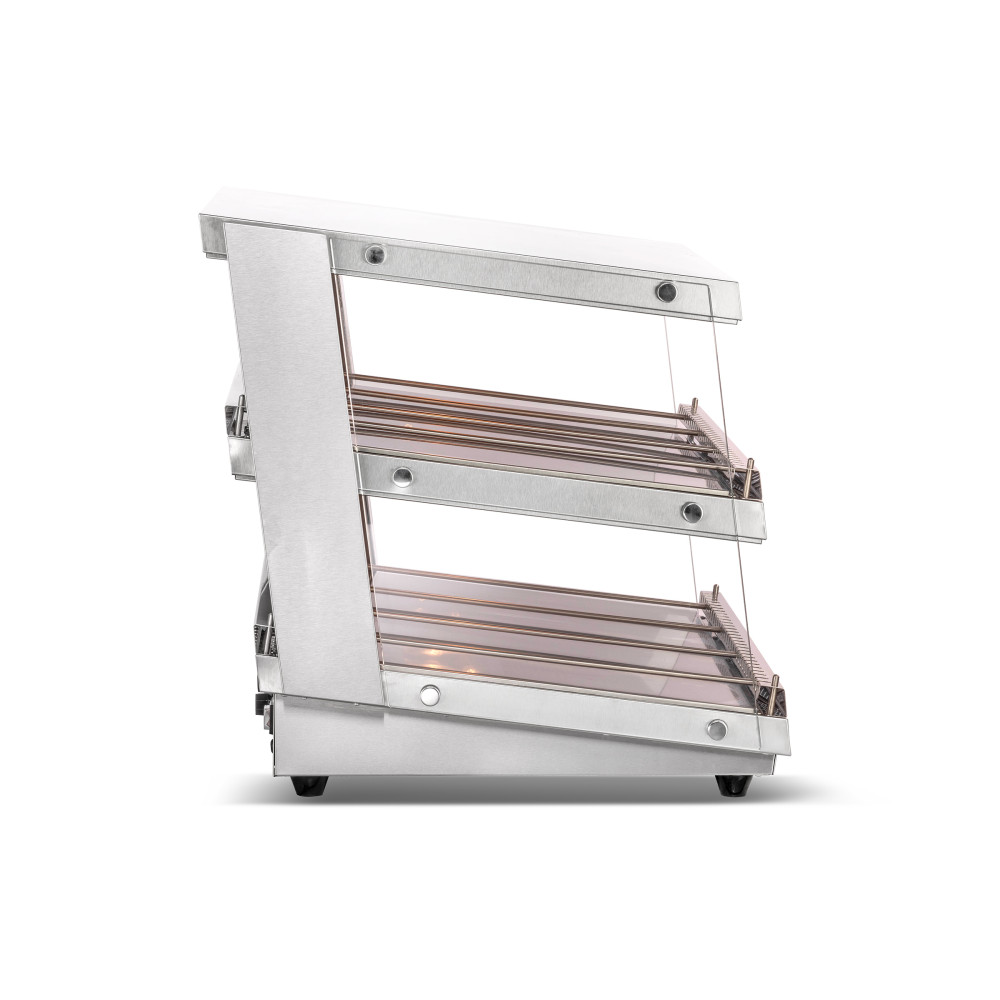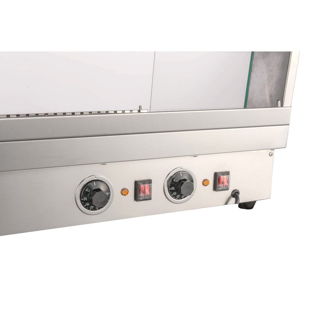 Теплова вітрина промислова GoodFood WS65 ELIT поєднує преміум-якість, гігієну та функціональність. Незалежні регулятори для кожної полиці та система Suvider дозволяють точно налаштувати зберігання різних продуктів, а підсвічування підкреслює їх апетитний вигляд. Ця модель ідеально підходить для теплової вітрини для кондитерки, вітрини теплової для піци або теплової вітрини в їдальню, де важливі санітарні стандарти та зручність.