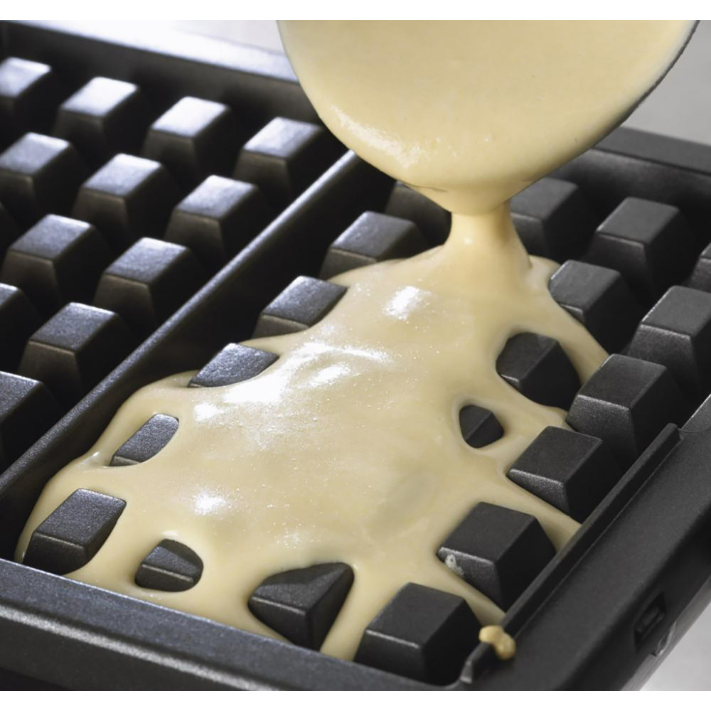 - Форма та розмір вафель: 2 об’ємні вафлі 170×105 мм, 4×6 клітин, висота зубця 11 мм.