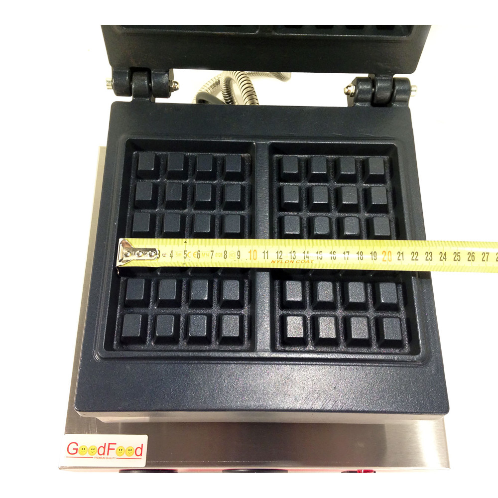 Вафельниця для бельгійських вафель від GoodFood дозволяє випікати одночасно дві прямокутні вафлі розміром 170х105 мм. Класична форма — 4х6 комірок із глибиною зубця 11 мм — ідеально підходить для приготування об’ємних, ароматних бельгійських десертів.